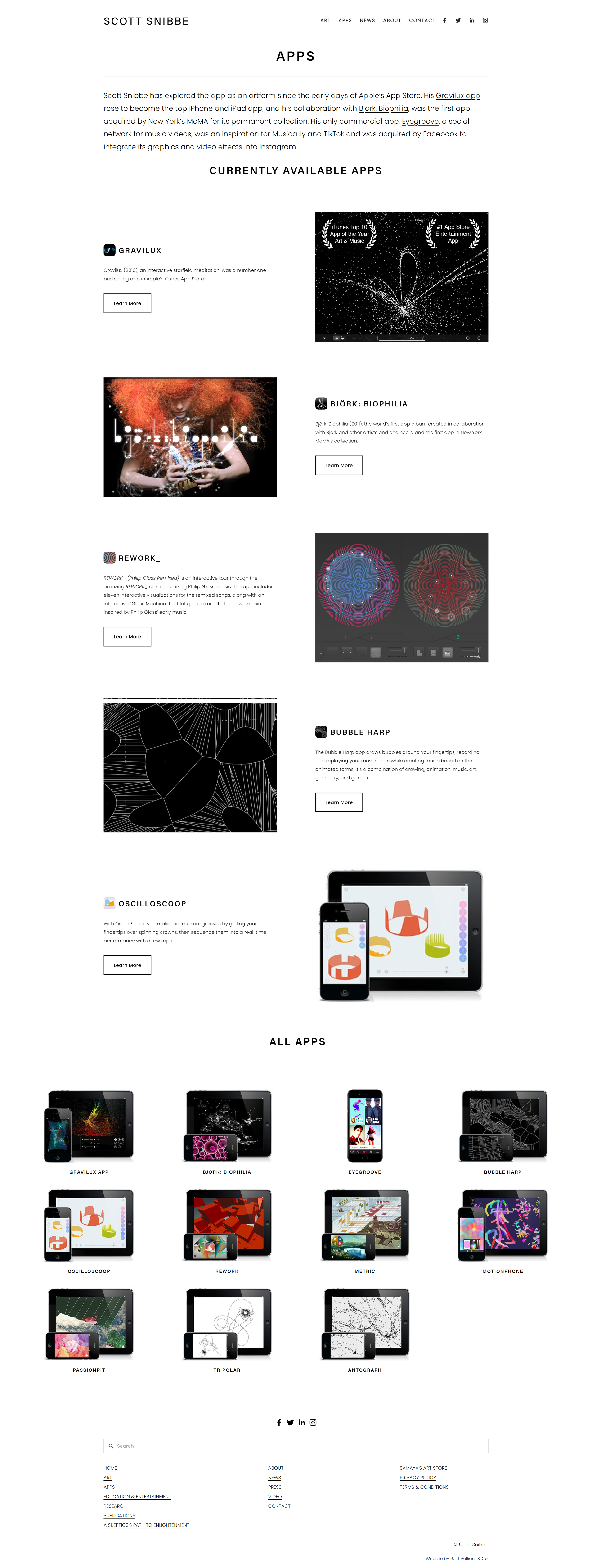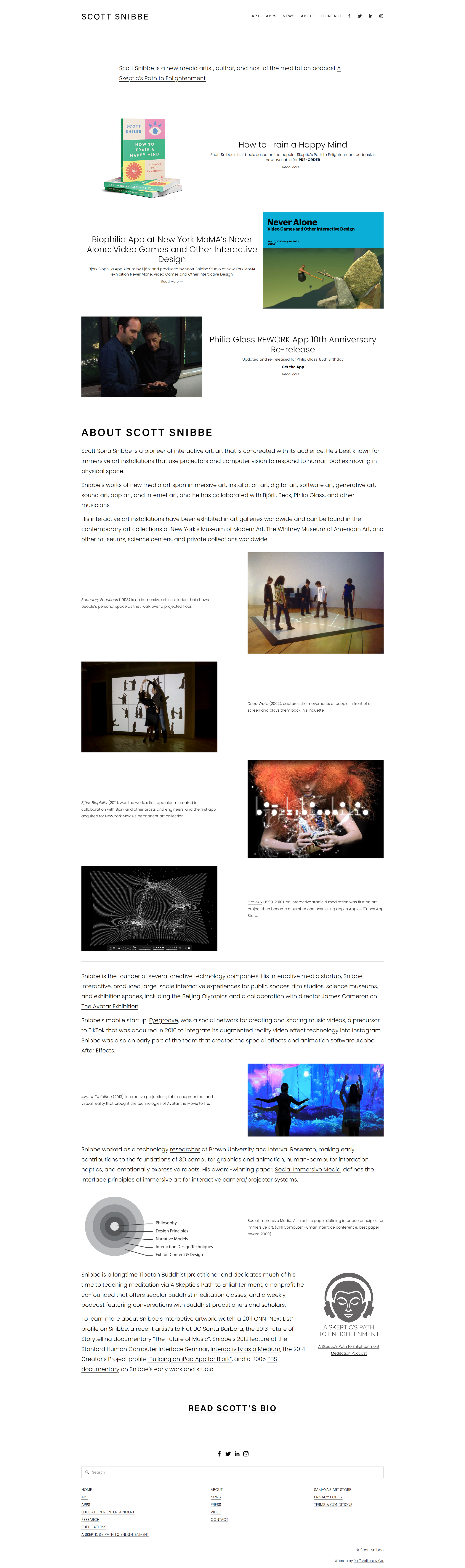 It was a privilege to work with the legendary and pioneering interactive artist Scott Snibbe to create his personal website. Scott engaged with our team to develop a site that would properly showcase and archive his extensive portfolio of work, in a very minimalist yet dynamic way.